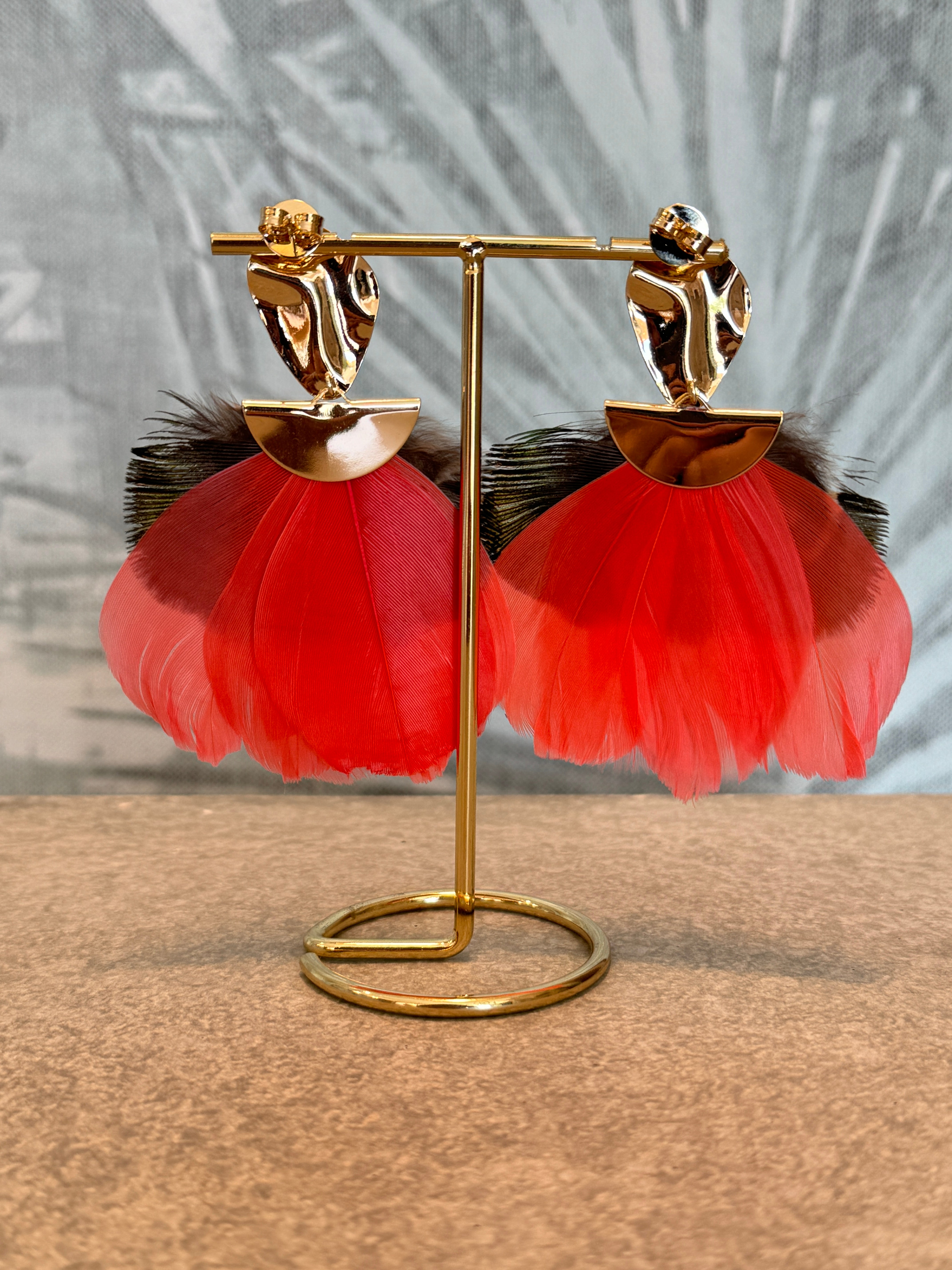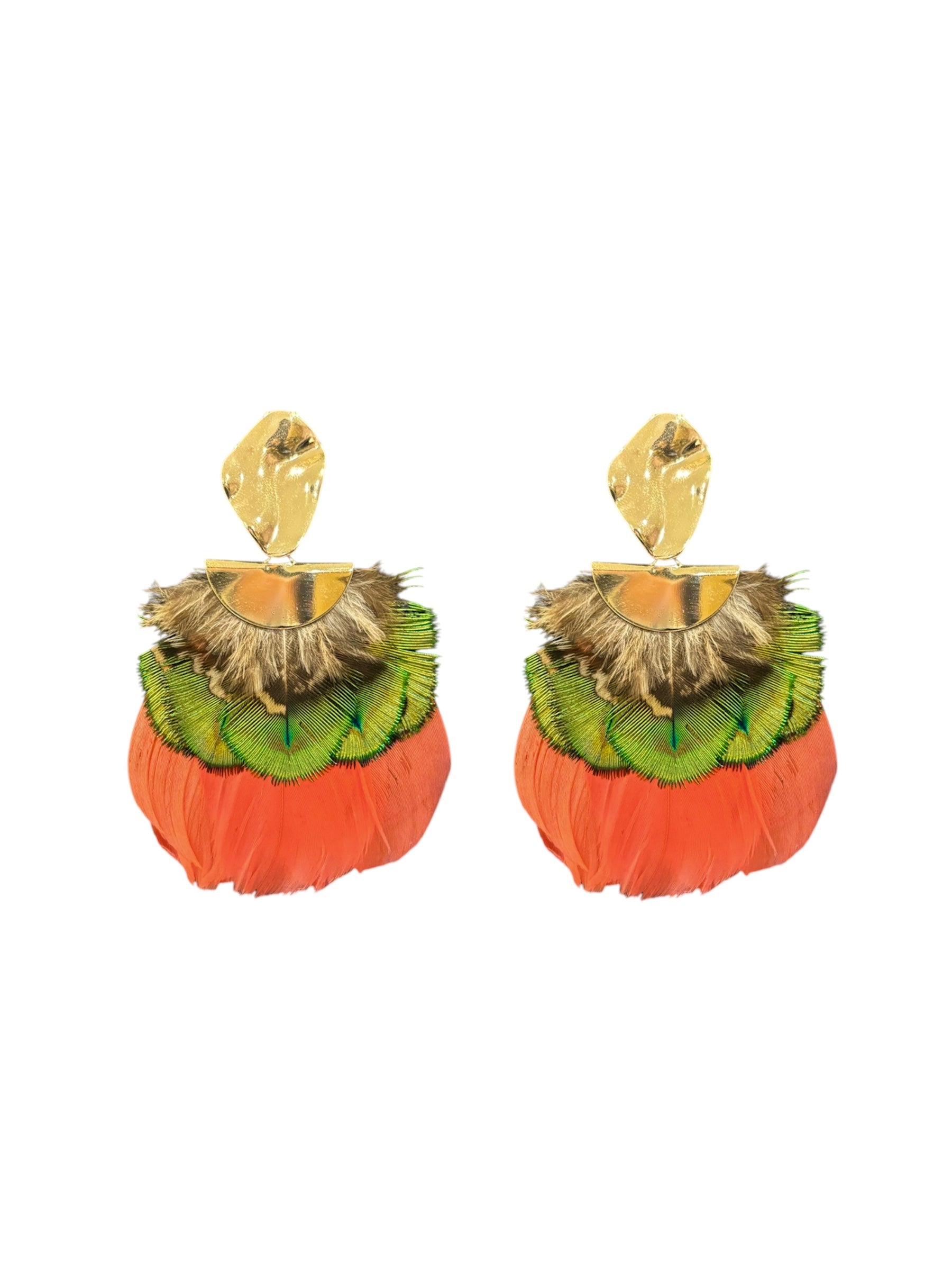 Material: 24K gold plated findings with goose and peacock feathers.