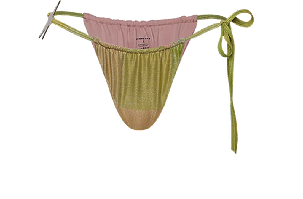 The ultimate bikini bottom you need in your rotation. This skimpy, ultra-flattering swim bottom with side-tie detail for adjustable fit & adjustable one side nickel star accesory. Glossy fabric