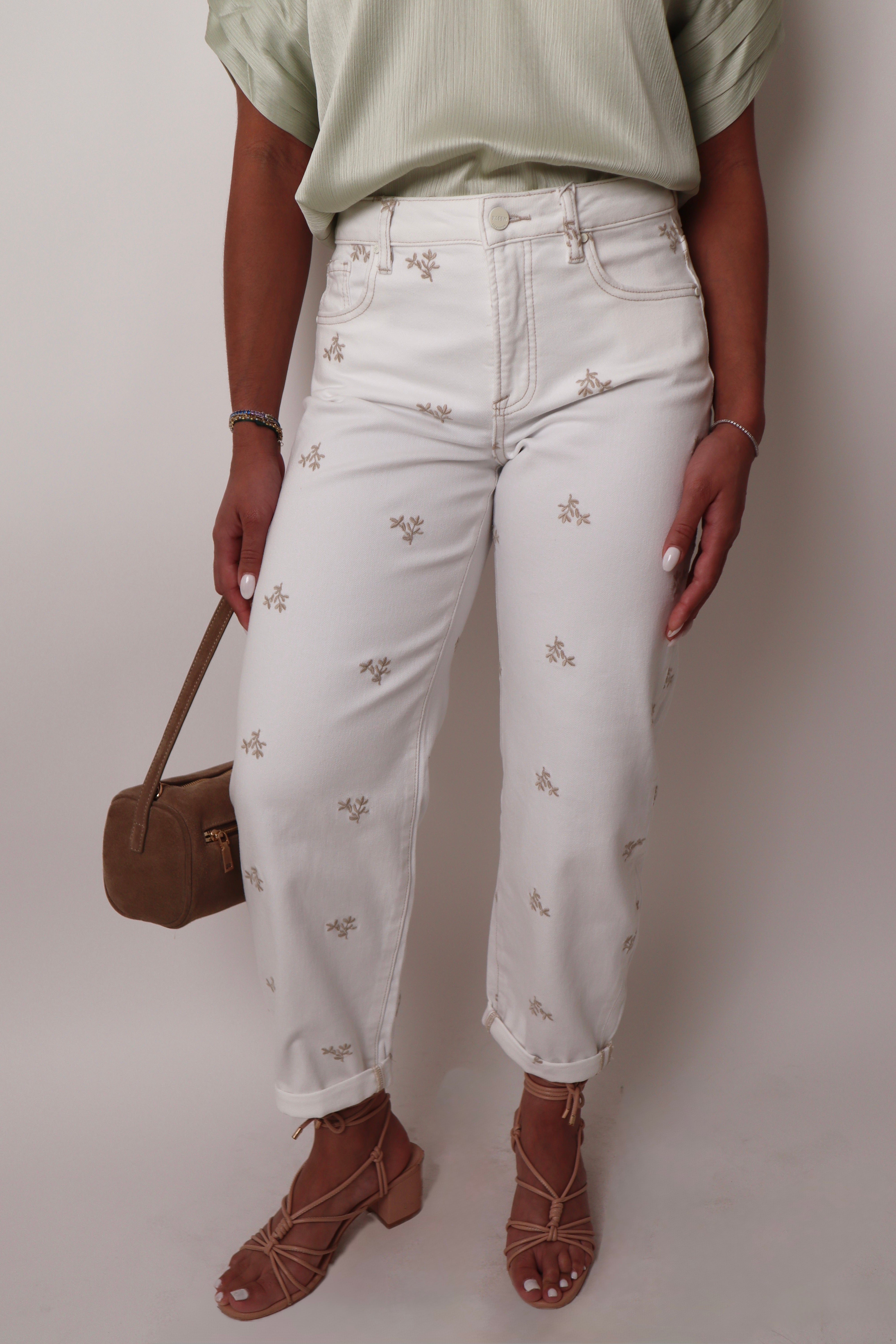 Color: White with cream flower details