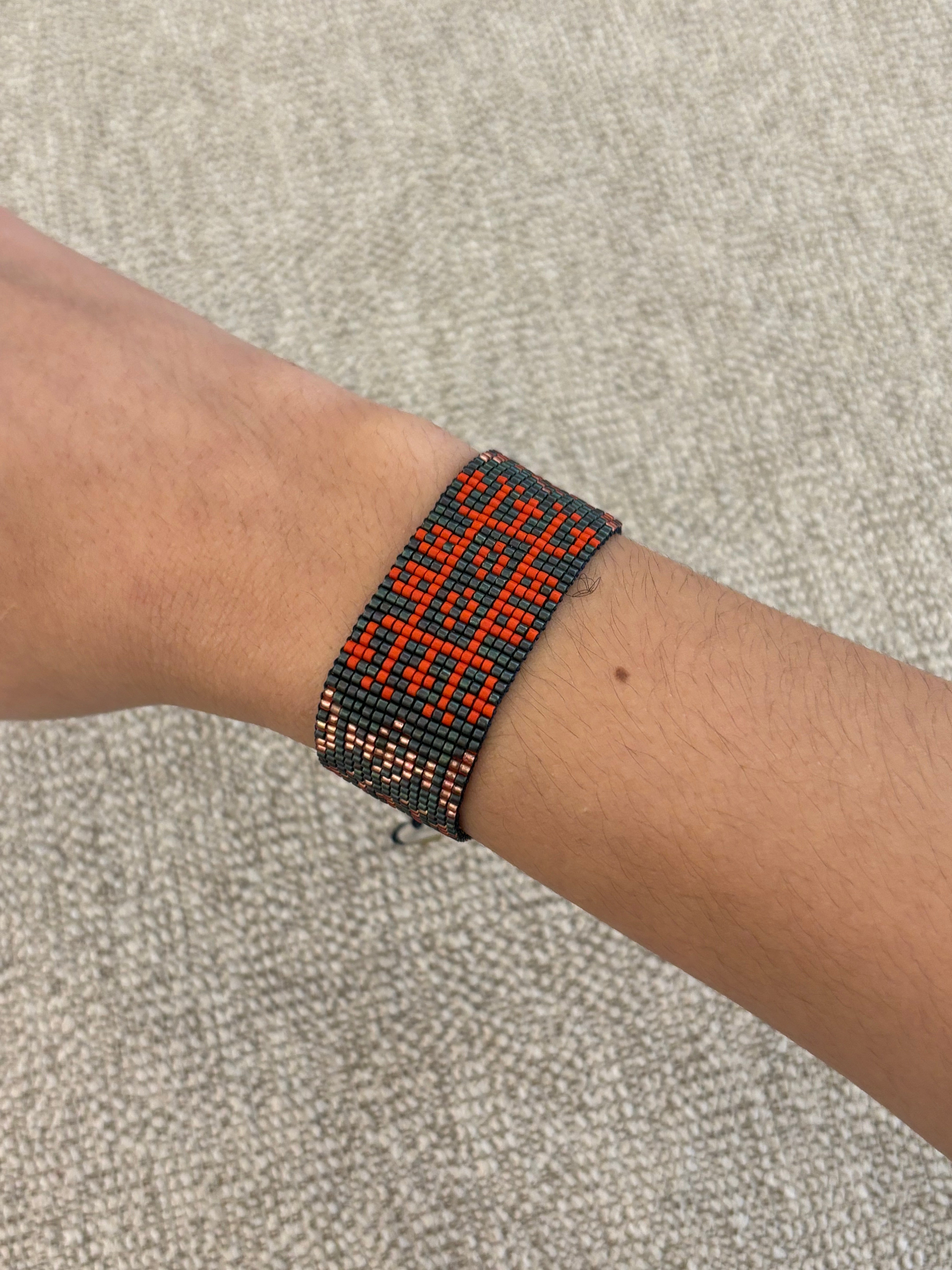 Material: Japanese beads, Polyester thread, Gold plated logo