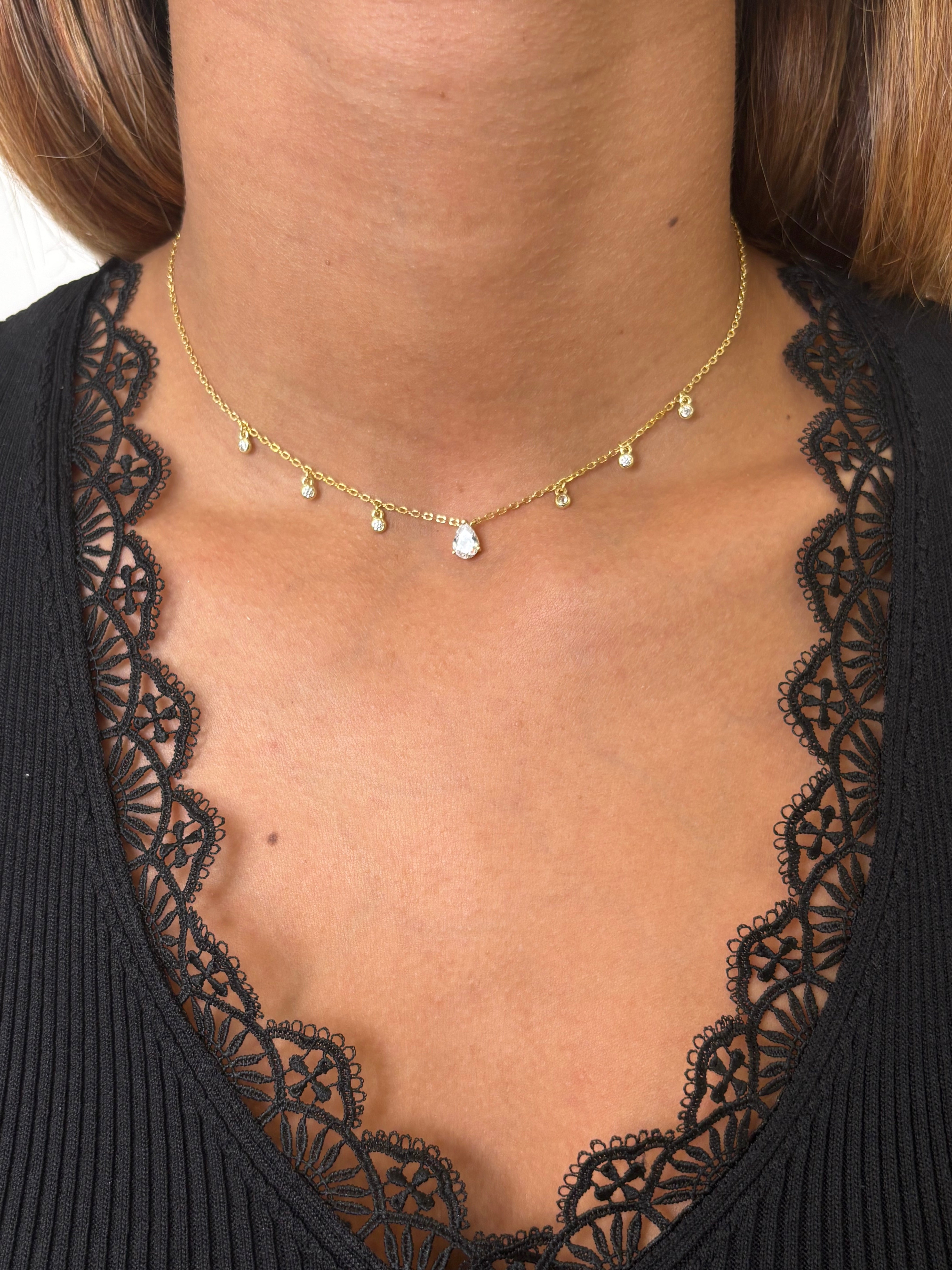 Details: 6 hanging rhinestones to the side with a middle bigger one in the center drop