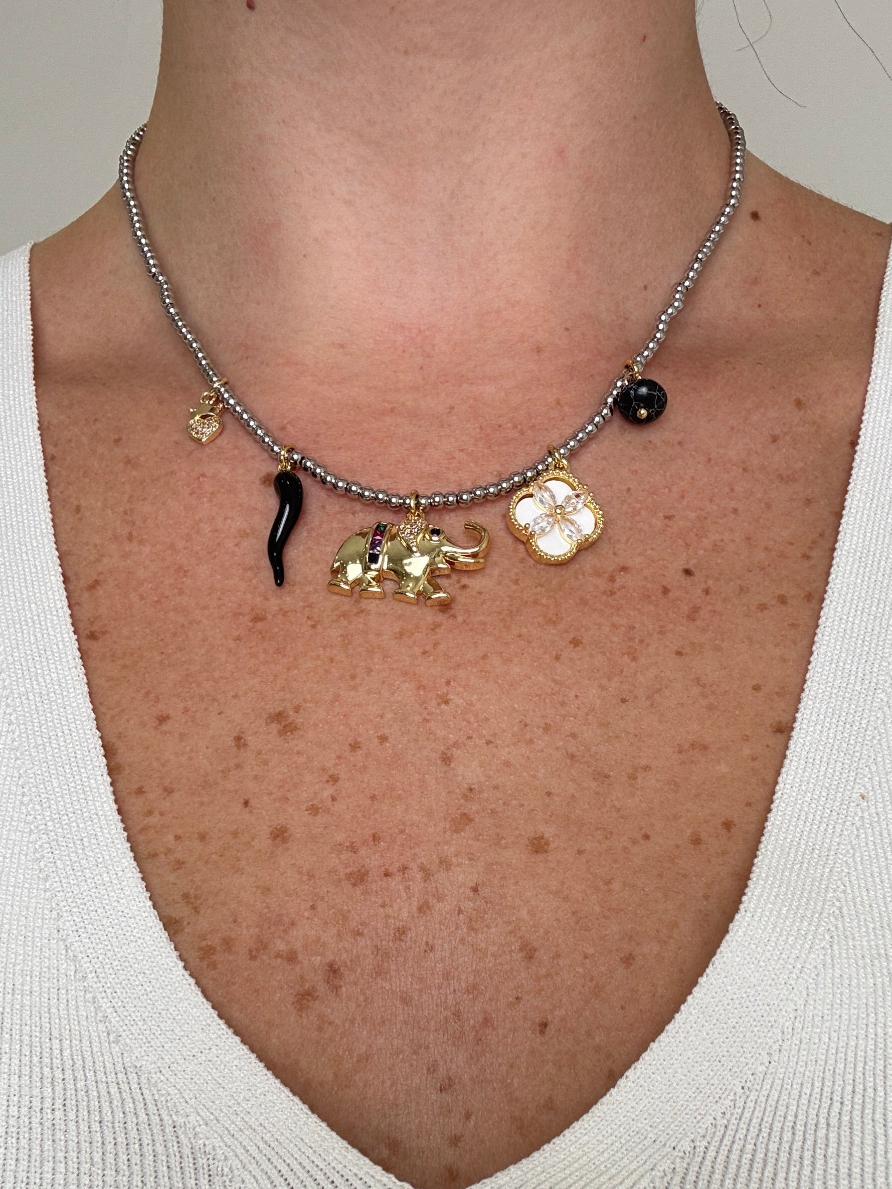 Silver Elephant Charms Necklace