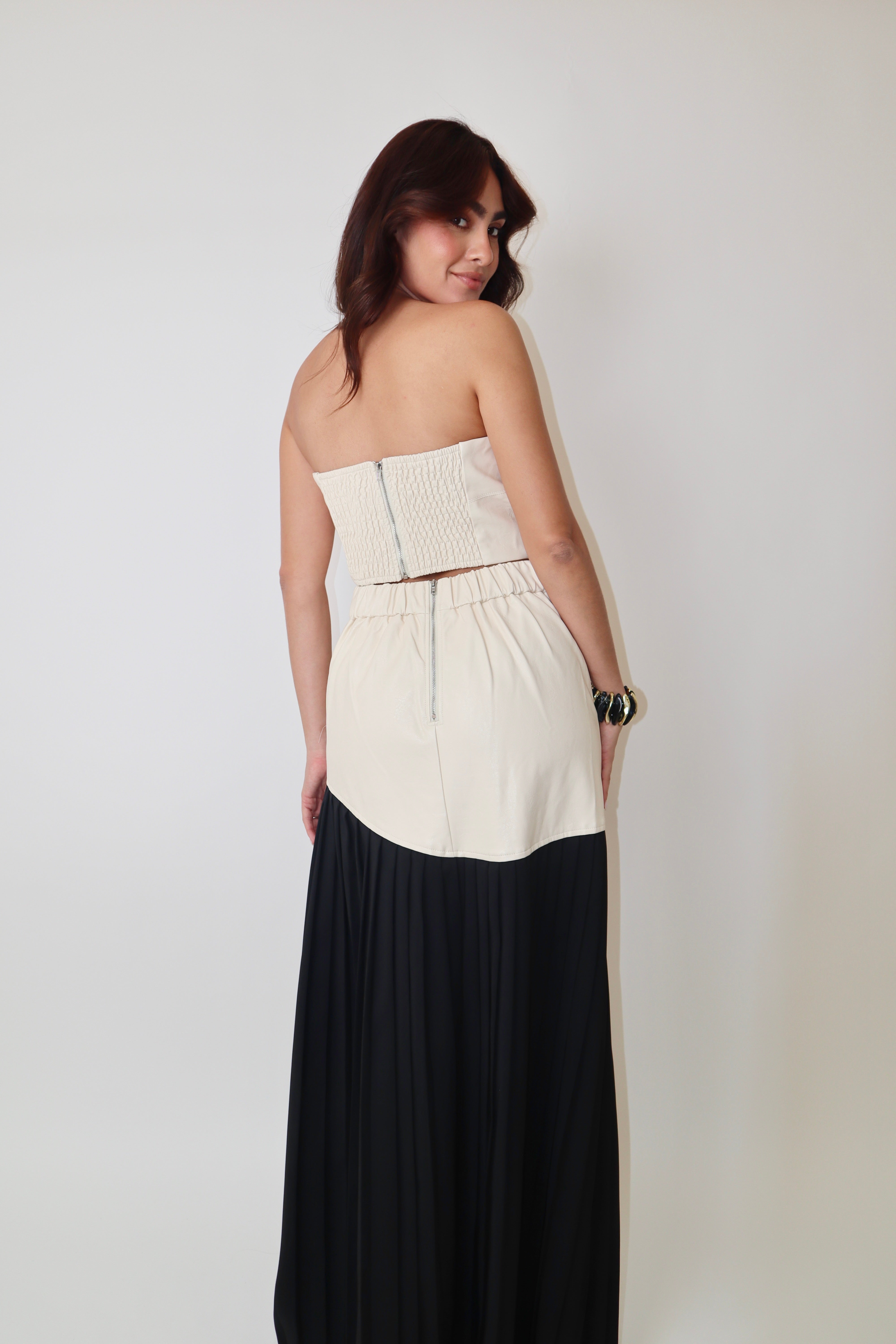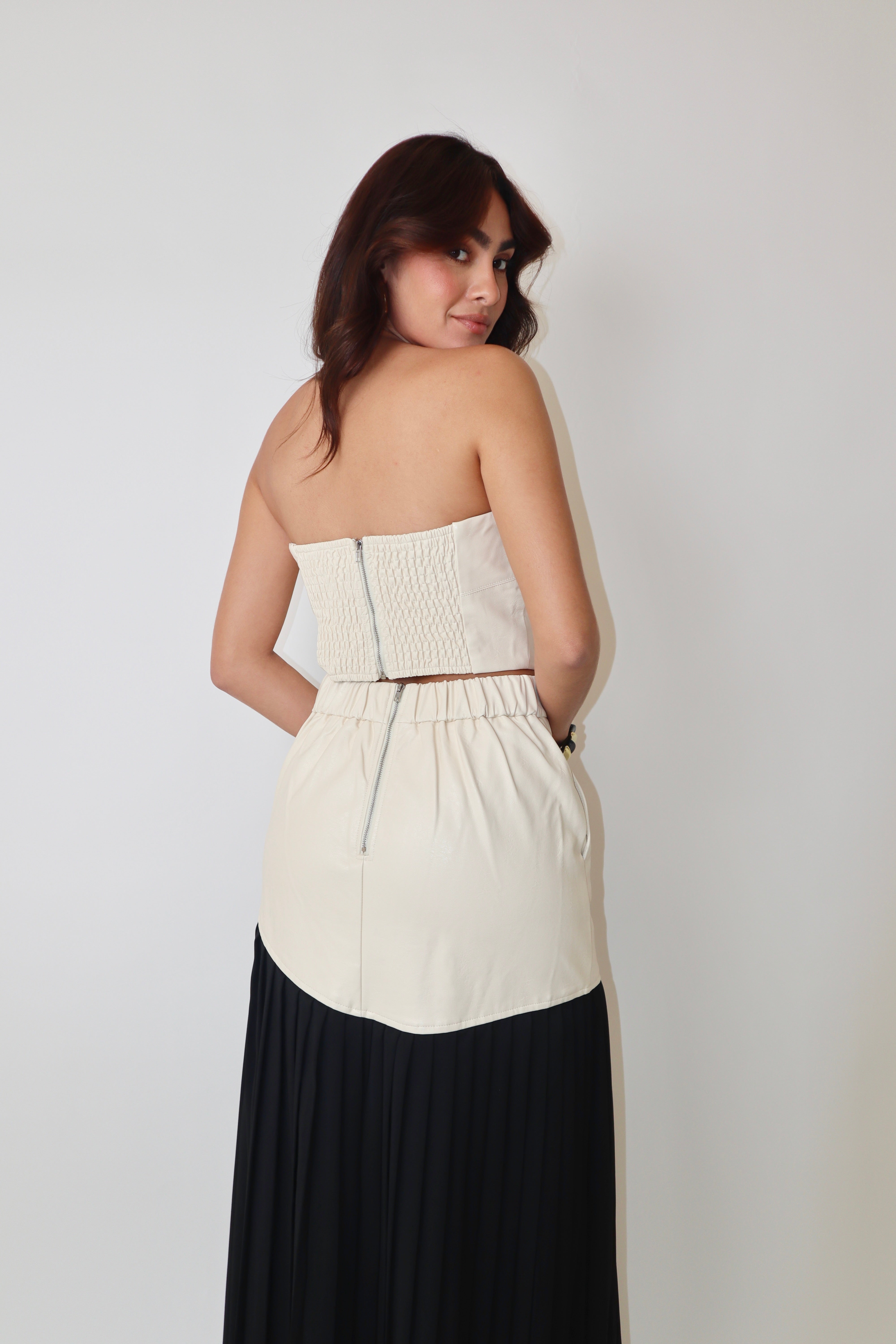 Details: Faux Leather Top & Pleated Slit Skirt Set