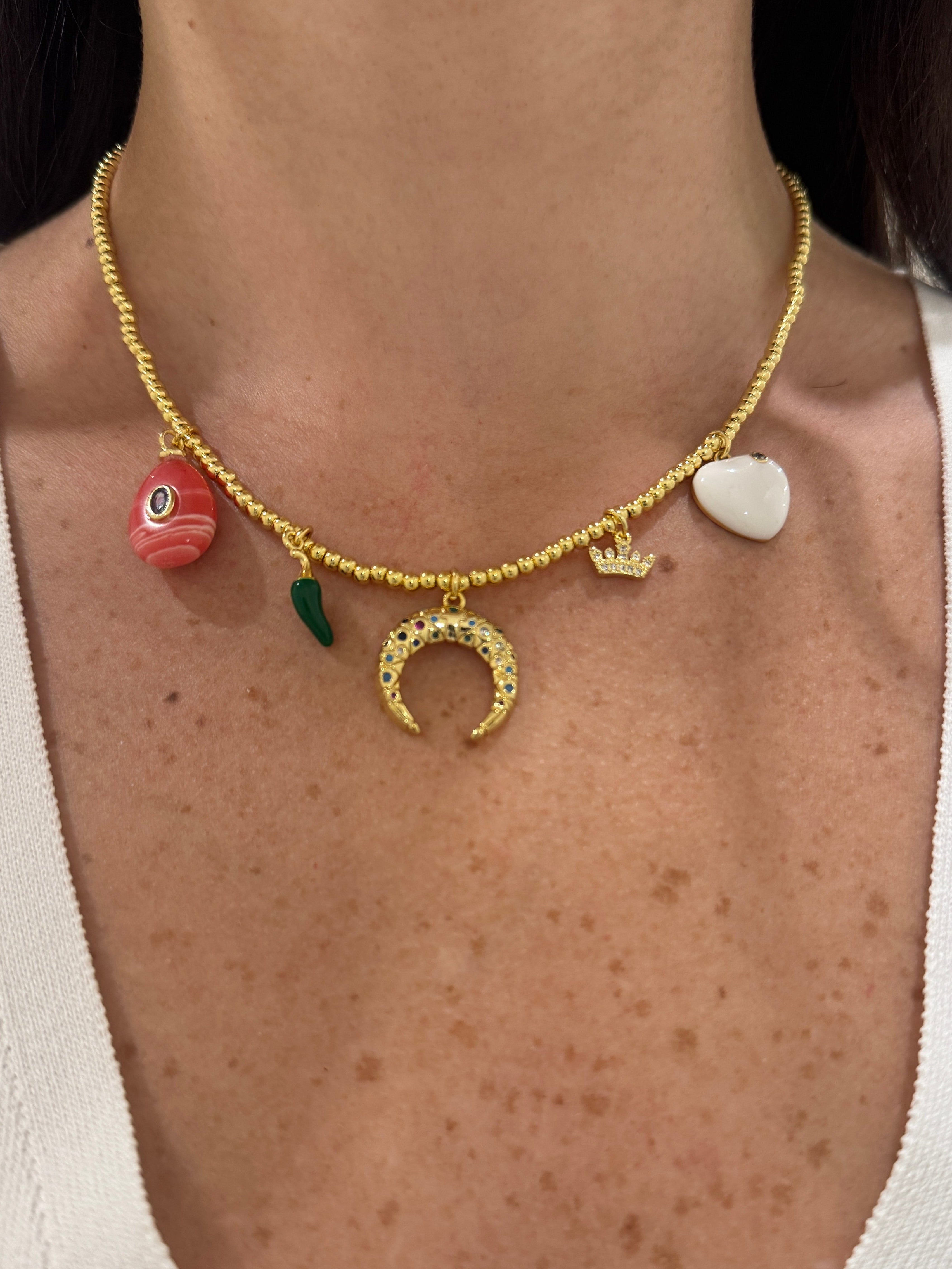 Pink Stone Multi Charms Necklace