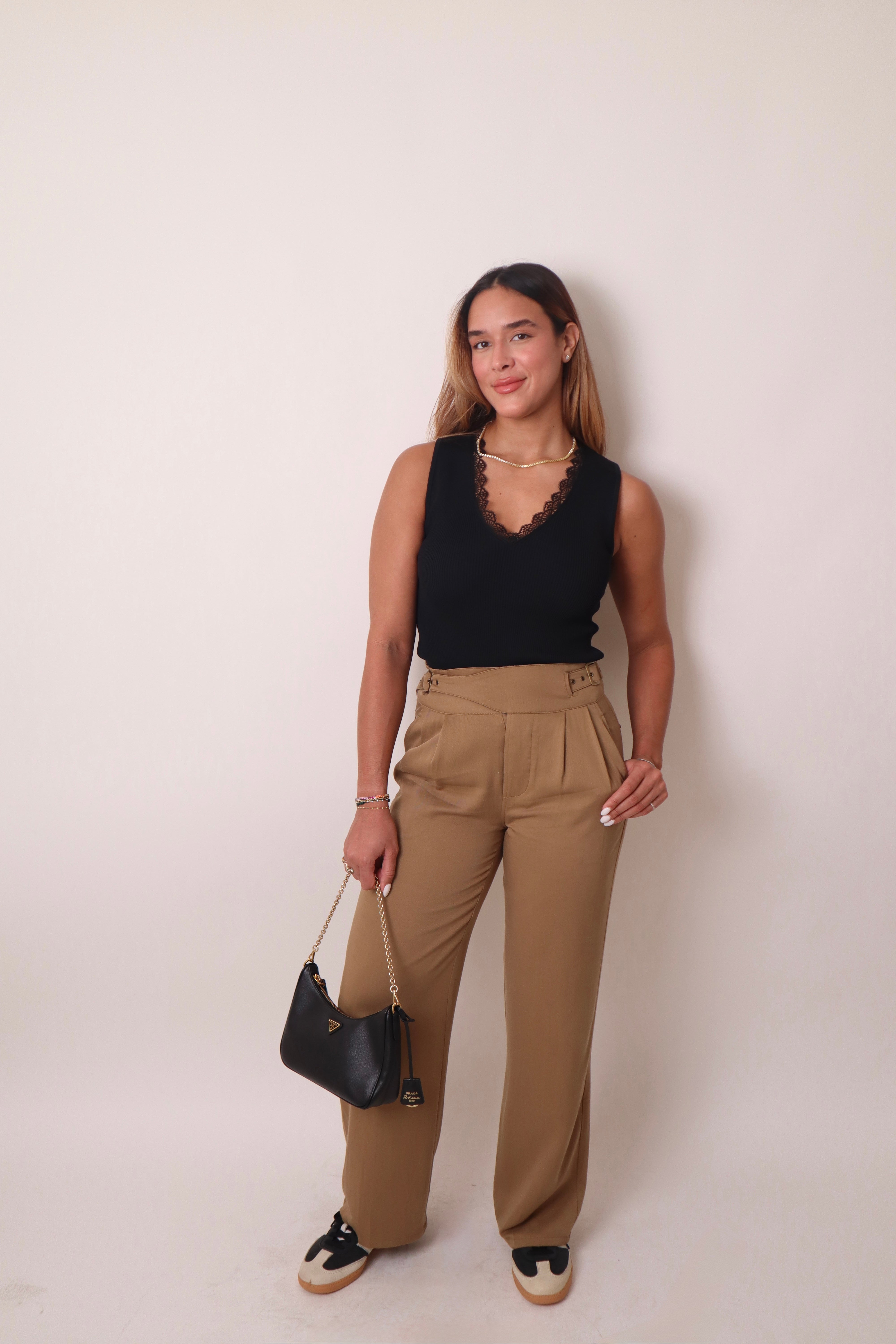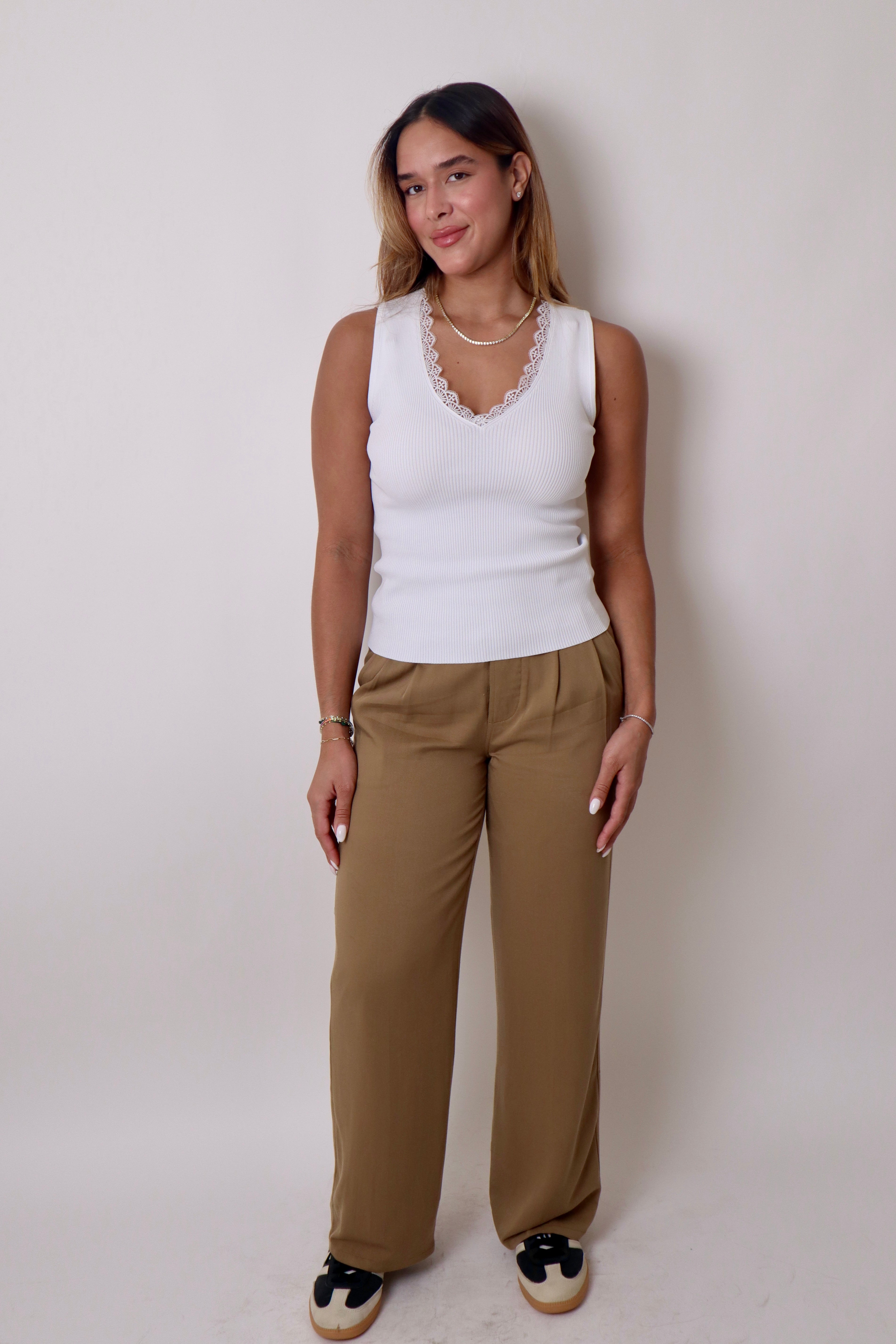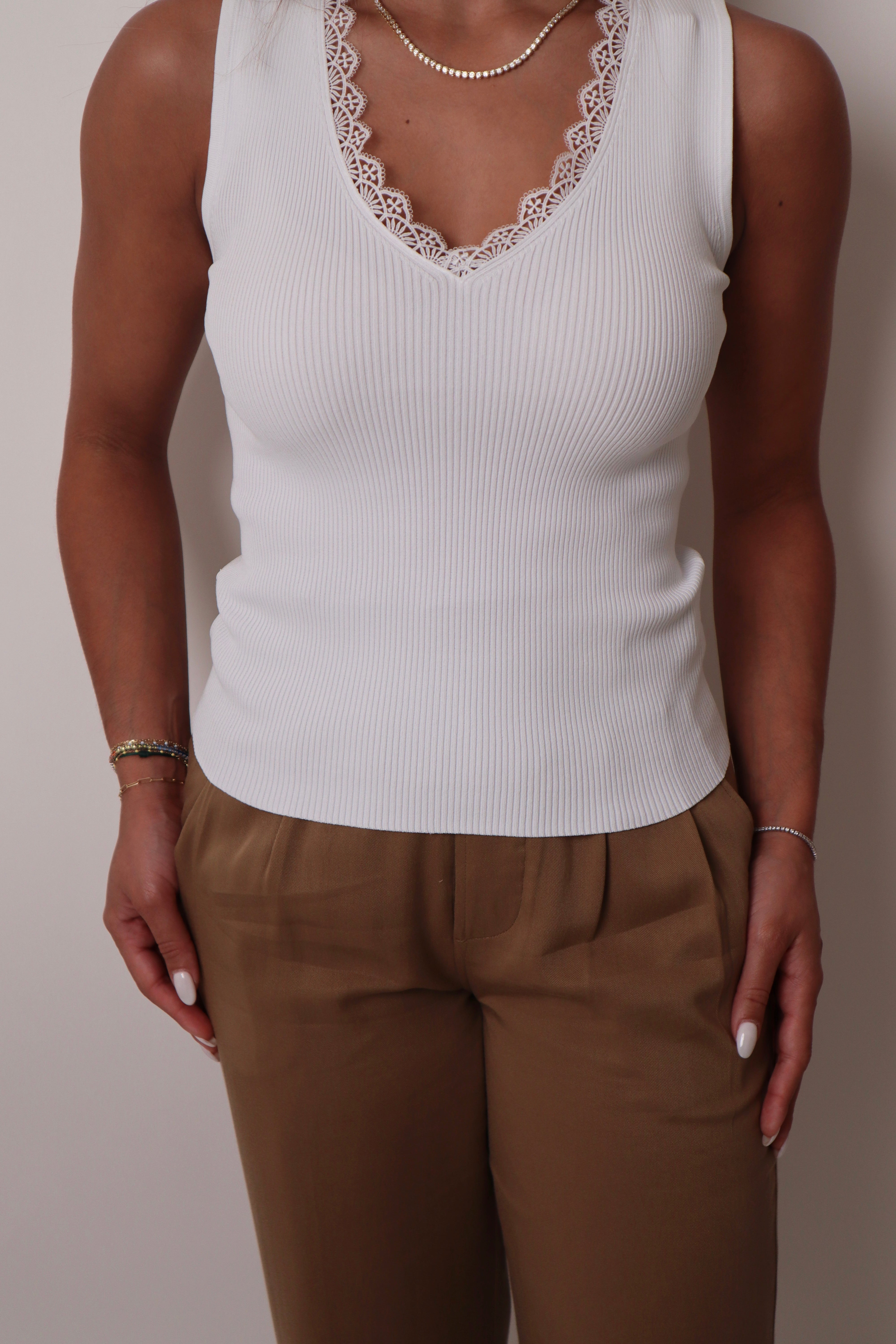 Details: Deep V-Neck with detailed trim